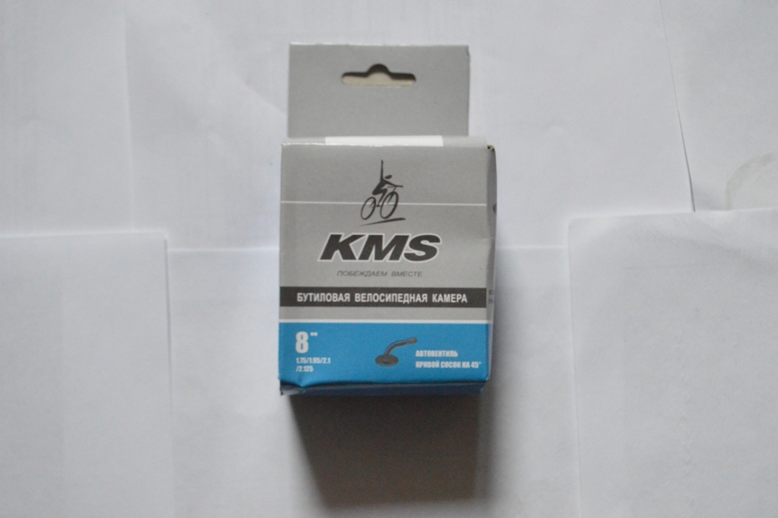 Бутиловая велосипедная камера 10" x 2 A/V 45º (с кривым соском), инд. yпак., русский дизайн, бренд "KMS"