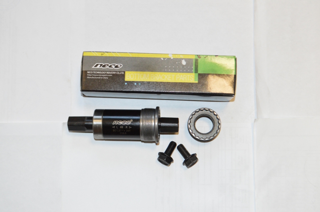 Картридж "Neco" В-910, длина оси 113.5мм, стальной корпус, черный, стальные чашки, с болтами, 1,37"х24Т, в инд. упак.