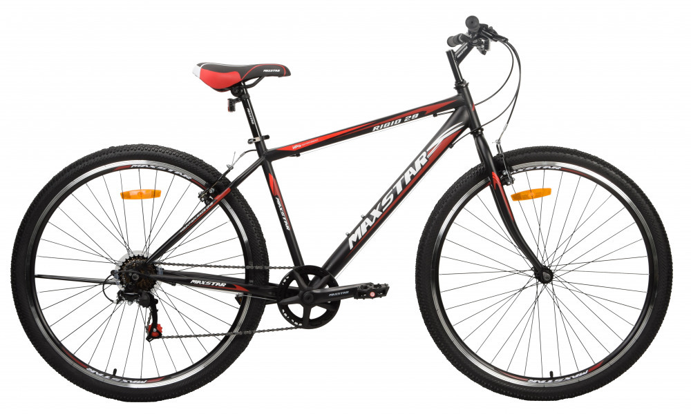 MAXSTAR 29" Rigid - доступная скоростная модель с колесами 29 дюймов на ригидной вилке. Простой в использовании велосипед, тормоза типа V-Brake. Прочные алюминиевые двойные обода, руль регулируется по высоте. Отлично подойдет подросткам и взрослым c ростом 170-185 см. Приятный бонус втулки на промах и рычажковый переключатель скоростей.