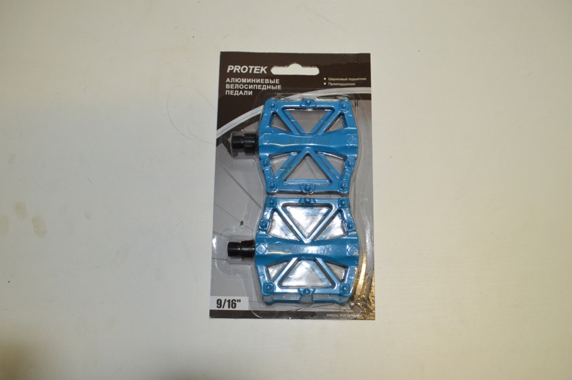 Педаль алюминиевая, "МТВ", с подшипниками, резьба 9/16", 3 цвета (синие, красные, зеленые), платформа "ПАУК", инд. упак., русский дизайн.