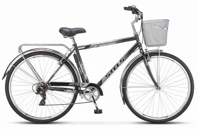 Дорожный велосипед Stels Navigator 350 Gent 28. Технические особенности: прочная стальная рама, жесткая вилка, двойной AL обод, надежные AL тормоза V-типа, покрышки CHAO YANG, седло CIONLLI, стальные крылья, багажник, звонок, корзина. Все детали велосипеда прошли тщательную проверку на безопасность и полностью отвечают европейским стандартам качества. Подходит для прогулочной езды по шоссе и ровным проселочным дорогам. Диаметр колес - 28 дюймов. Вес - 18,24 кг.